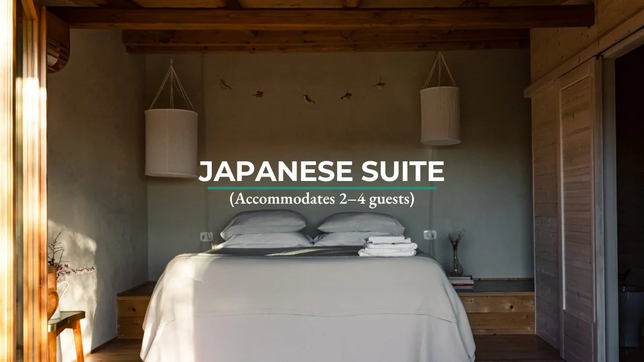 Each bedroom has its own personality. What they share is light, calm, and thoughtful detail. All rooms are built using natural materials such as wood, clay, and lime. Every element was carefully chosen to reflect our values and design ethos. You will also find pieces that are personal to us — vintage objects from our family heritage and Giulio’s paintings.